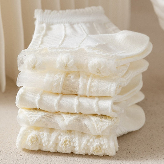5 Paires/Lot Summer Short Women White Socks Low Tube Cool Socks Set Cute Print Ankle Foot Cover Fashion New Kawaii Sock